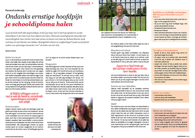 Regelmatig verschijnen er interessante artikelen over passend onderwijs en/of Reach in de media. Zoals bijvoorbeeld in een uitgave van Hoofdzaken, van de Nederlandse Vereniging van Hoofdpijnpatiënten: ondanks een dagelijkse ernstige hoofdpijn toch je schooldiploma halen.